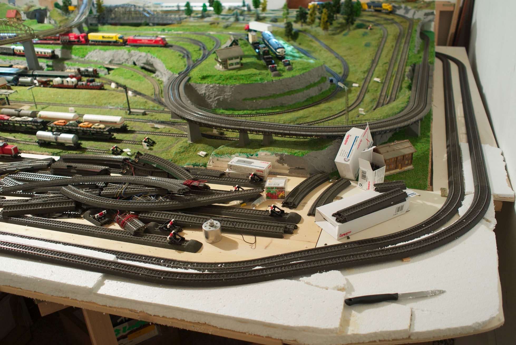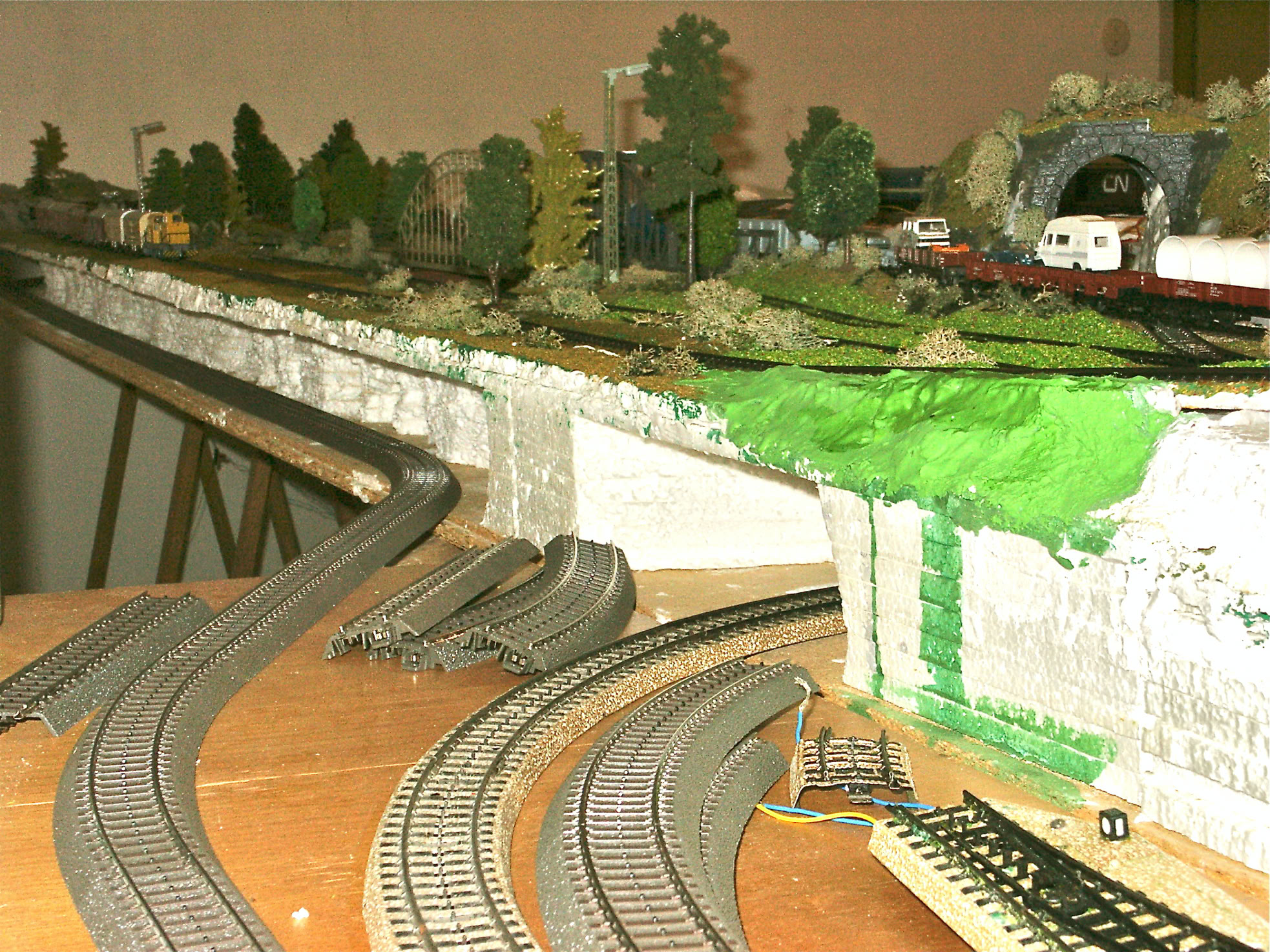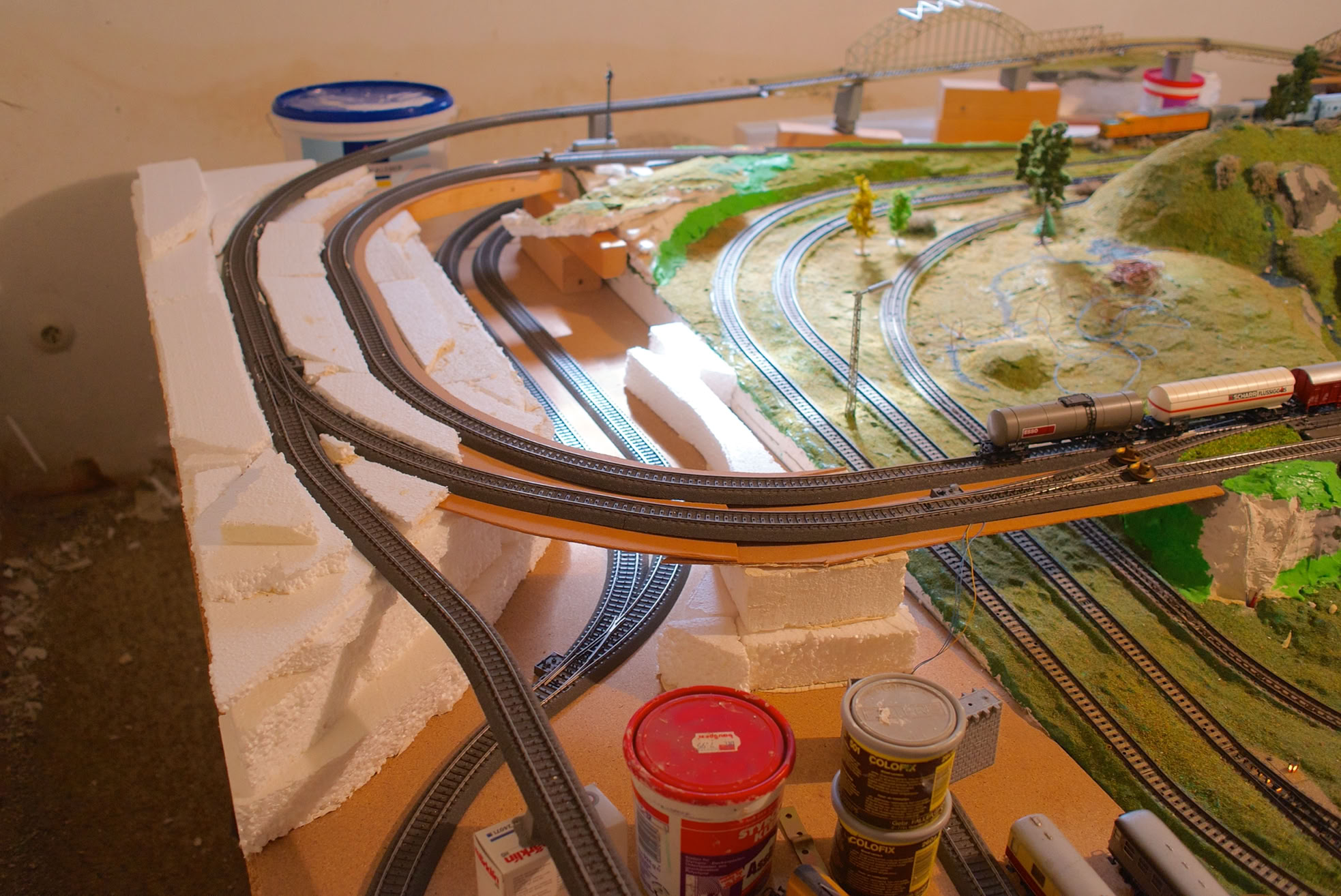 Als letzter großer Bauabschnitt fehlt jetzt für einen optimalen Fahrbetrieb die Fertigstellung der Passage im Untergrund. Erst hierbei wird es möglich, dass Züge vom neuen Güterbahnhof als auch über die große Gitterbrücke her kommend anfahren, ohne Stopp weiterfahren und die komplette Anlage unterfahren können. Damit schließt sich ein großer Kreis für den echten Spielspass. Weitere Details und landschaftliche Ausgestaltungen können dann nachträglich weiter verfeinert werden und die Landschaft weiter detailliert werden.