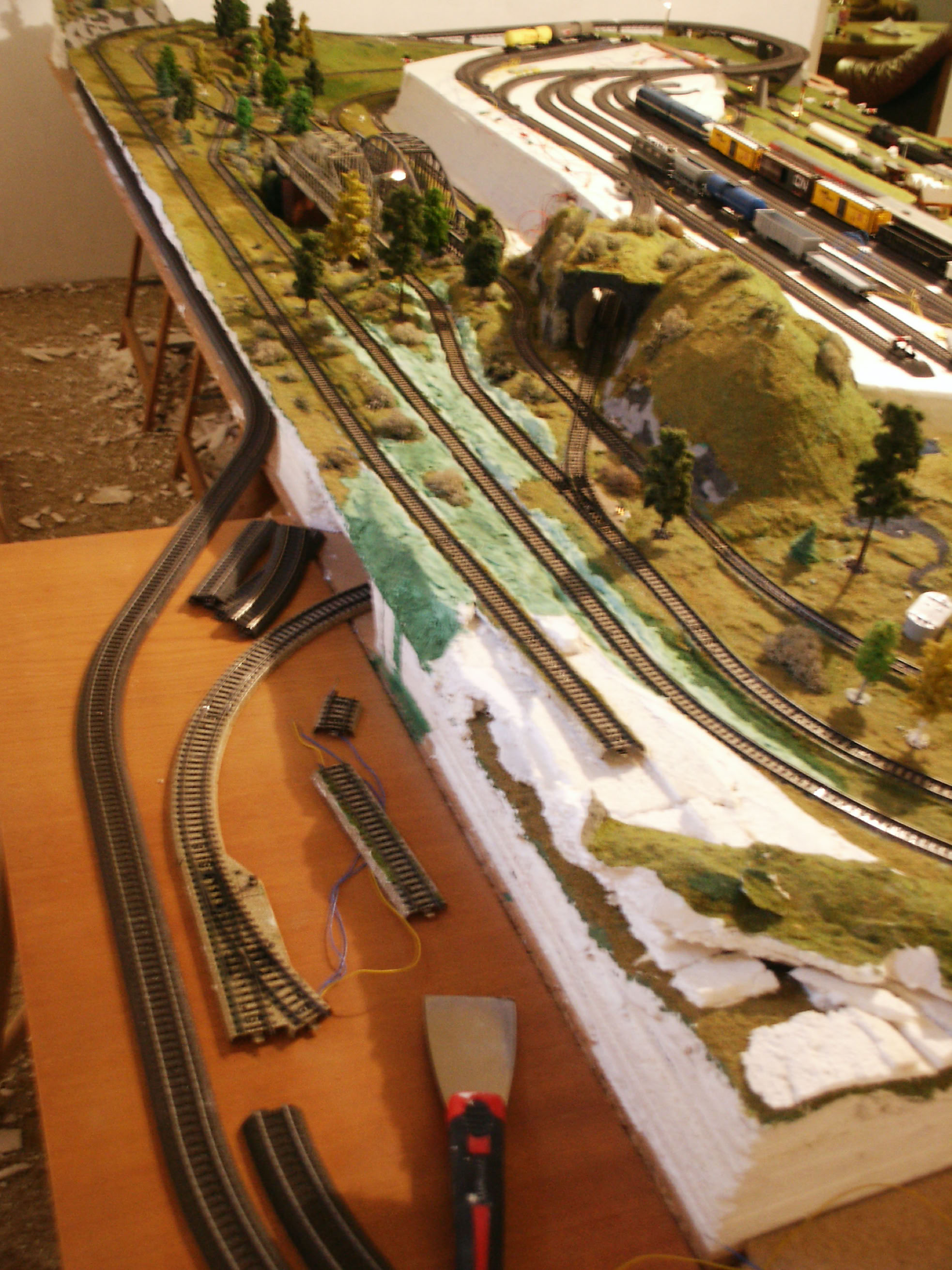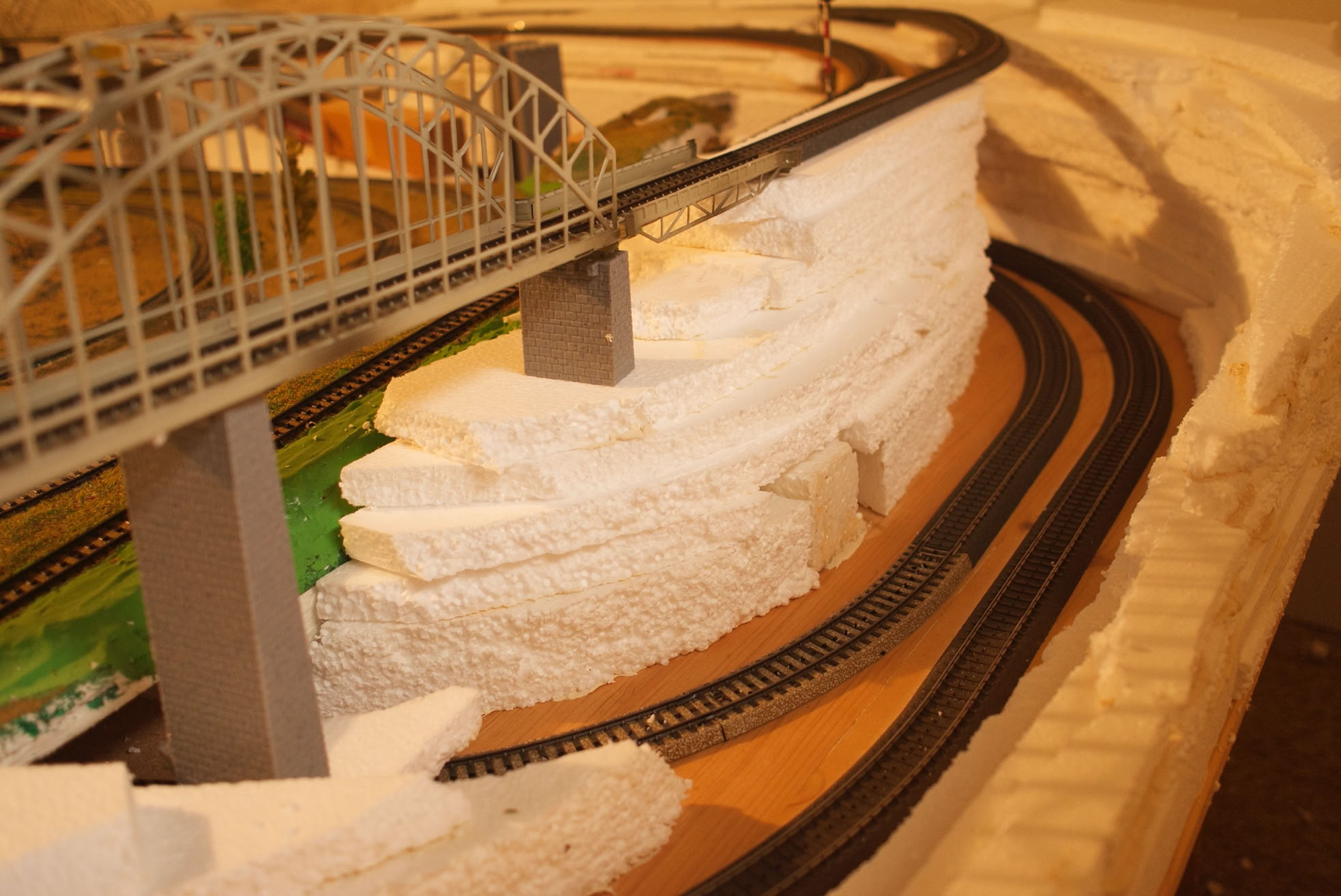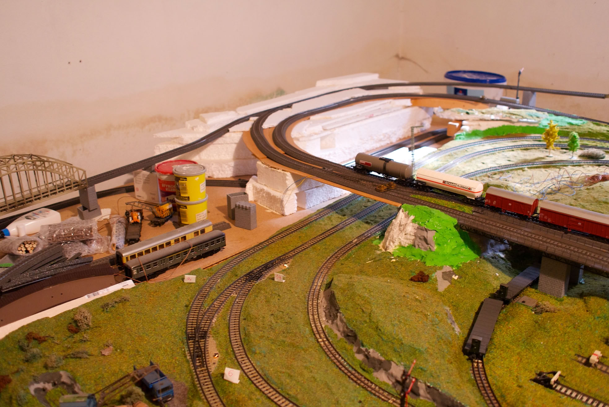 Als letzter großer Bauabschnitt fehlt jetzt für einen optimalen Fahrbetrieb die Fertigstellung der Passage im Untergrund. Erst hierbei wird es möglich, dass Züge vom neuen Güterbahnhof als auch über die große Gitterbrücke her kommend anfahren, ohne Stopp weiterfahren und die komplette Anlage unterfahren können. Damit schließt sich ein großer Kreis für den echten Spielspass. Weitere Details und landschaftliche Ausgestaltungen können dann nachträglich weiter verfeinert werden und die Landschaft weiter detailliert werden.