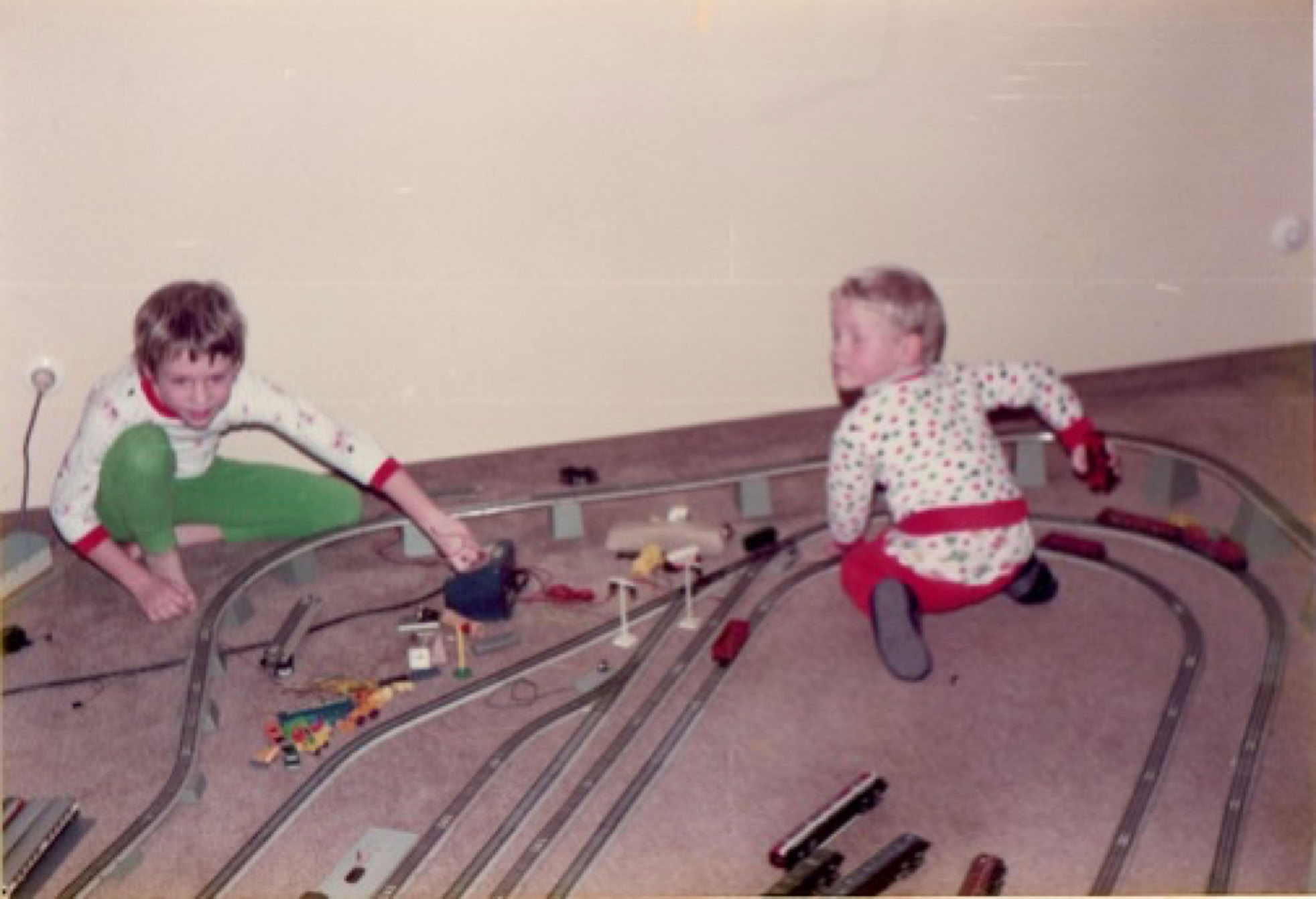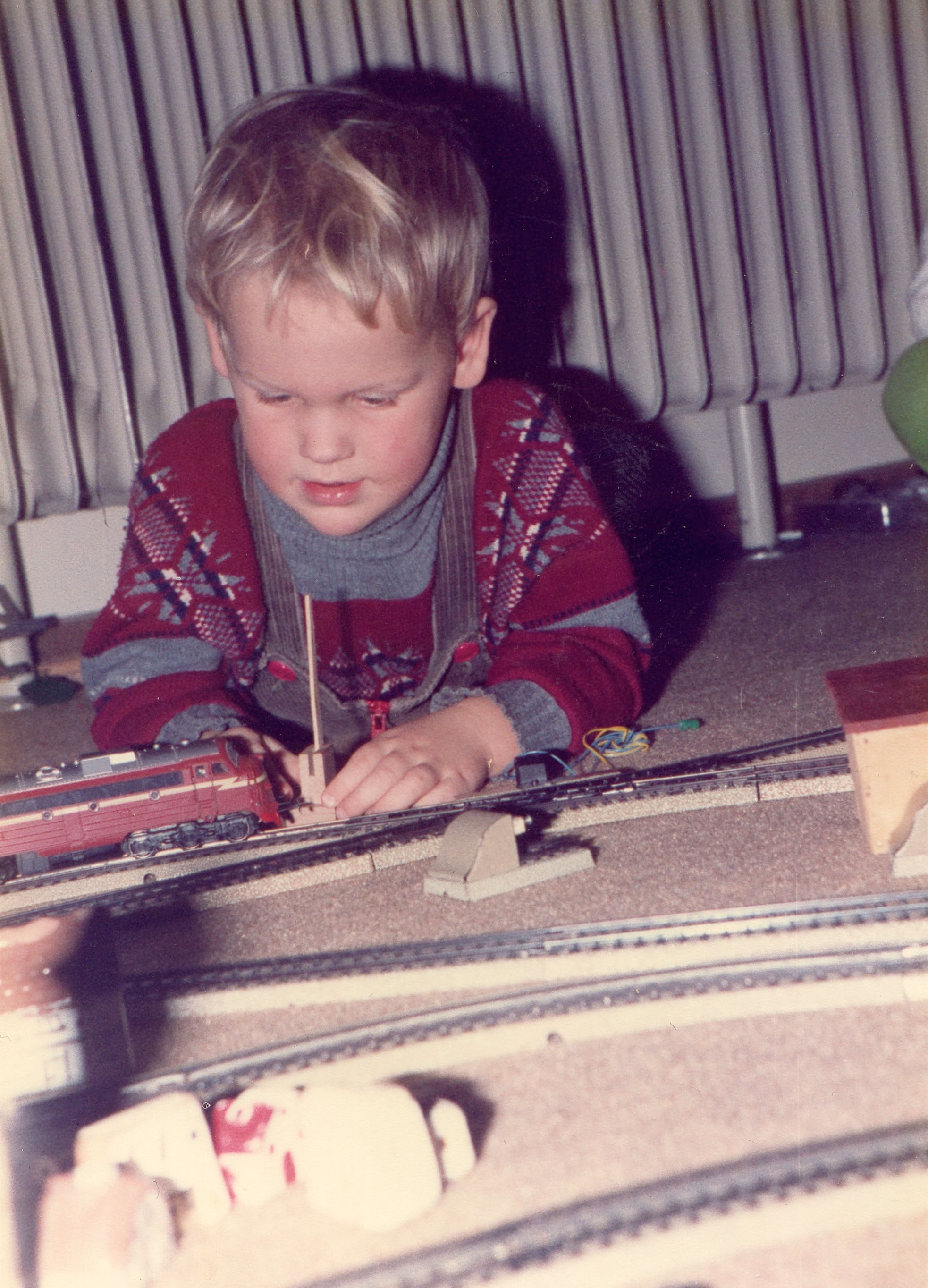 Auch mein Papa hat diese Tradition aufgegriffen und ließ mich und meinen Bruder nur an Weihnachten "die Eisenbahn aufbauen". Die Schienen wurden im Wohnzimmer und quer durch die ganze Wohnung verlegt, die Weichen waren zwar schon seit jeher elektrisch schaltbar, aber die Kabel wurden abgeschnitten und diese von Hand betätigt. Als wir nach Waldenbuch gezogen sind und die Räumlichkeiten eine kreisförmige Verbindung Küche-Gang-Wohnzimmer-Esszimmer-Küche hatten, wurde ein großer Kreis durch das ganze Haus gelegt. Alle spielten mit: meine Mama hat die offenen Güterwägen in der Küche mit selbstgebackenen Gutzle und einige Ripple mit Schokolade beladen, dieser Zug wurde von meinem Papa gesteuert und setzte sich in Richtung Wohnzimmer in Bewegung, wo er dann von mir und meinem Bruder entladen und seiner kostbaren Fracht beraubt wurde :-)