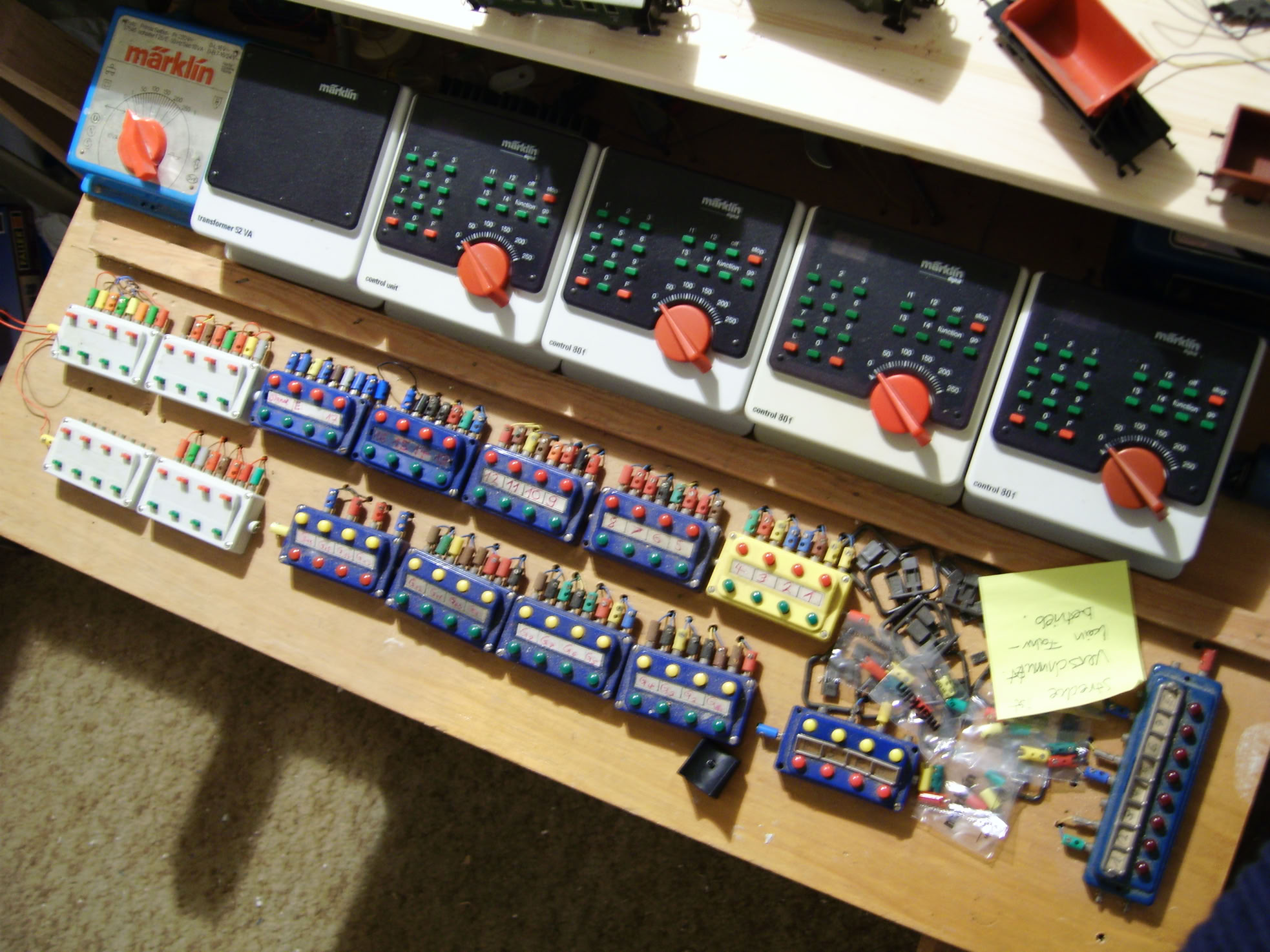 Soweit so gut. Trotzdem wäre es gut zu wissen, welche Streckenabschnitte im Untergrund besetzt sind. Es ist damit möglich auf einer Schautafel die besetzten Abschnitte per LED-Leuchte anzuzeigen. Aber was ist mit dem Schattenbahnhof? Wenn ein Zug in diesen einfährt und dort abgestellt wird, ist die Strecke frei, wird aber immer als belegt angezeigt. Man könnte also mit zusätzlichen Gleisbesetztmeldern in der Durchfahrstrecke immer zusätzlich erkennen, ob diese frei ist bzw. ob ein Zug in den Schattenbahnhof eingefahren ist.