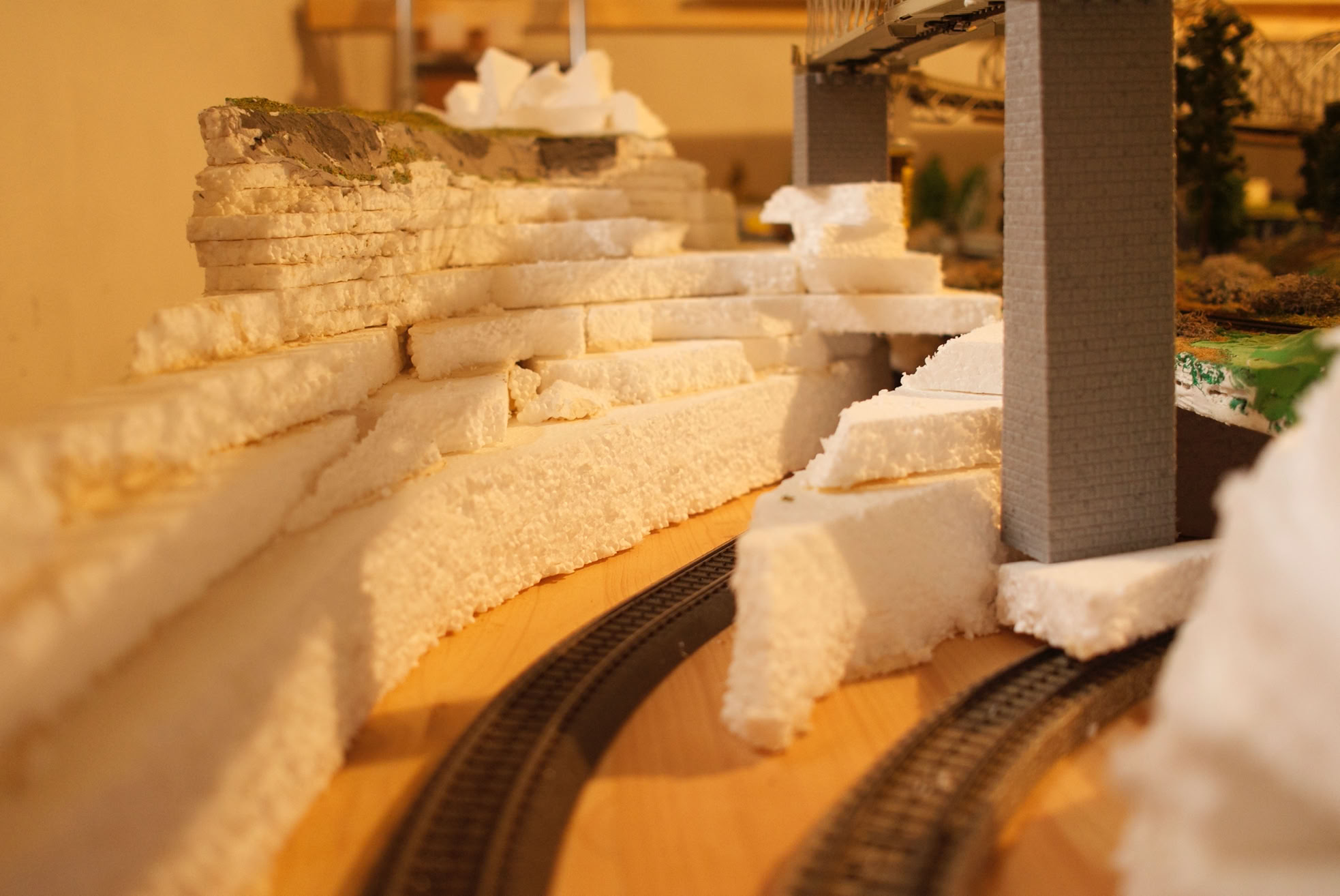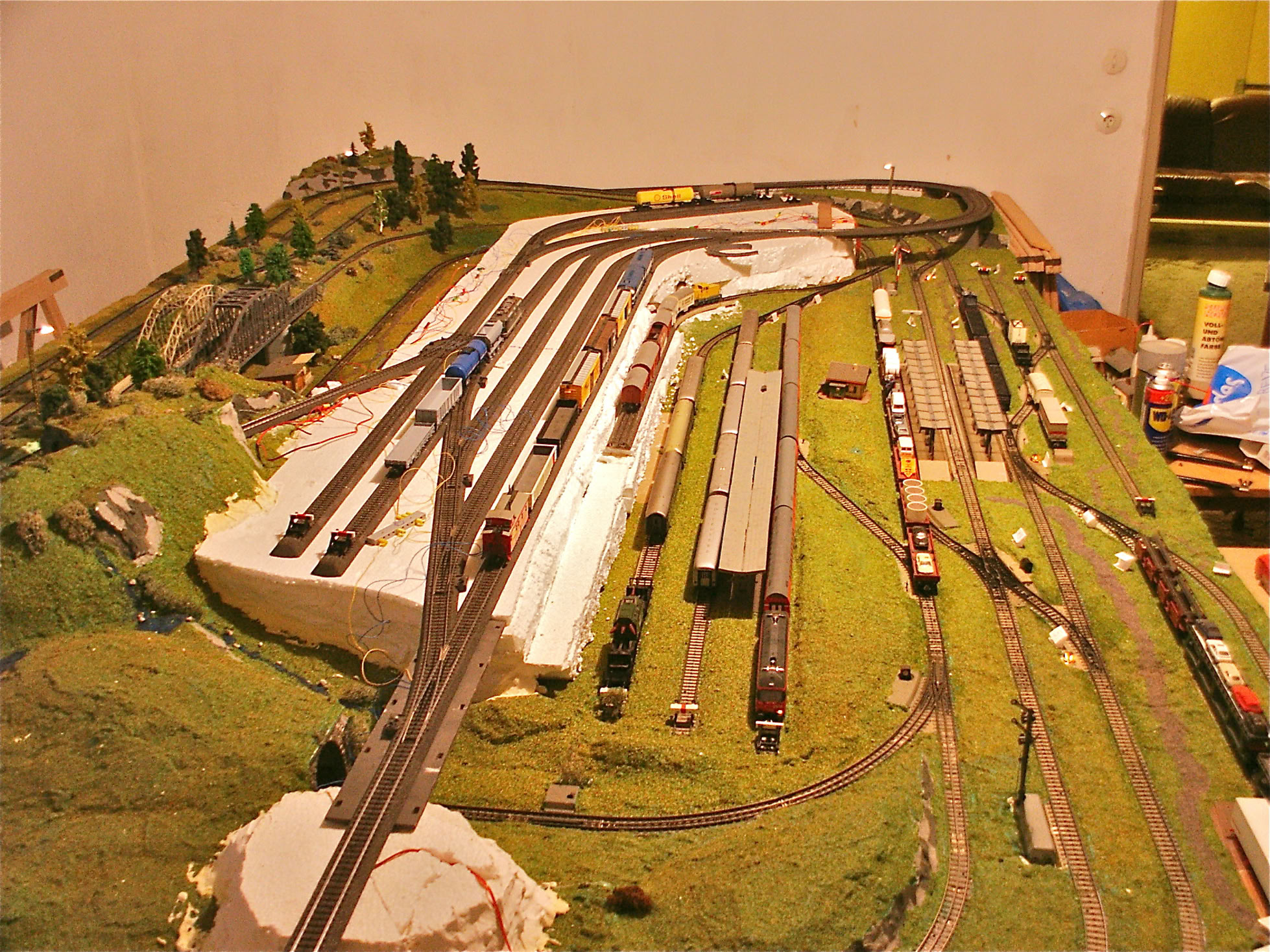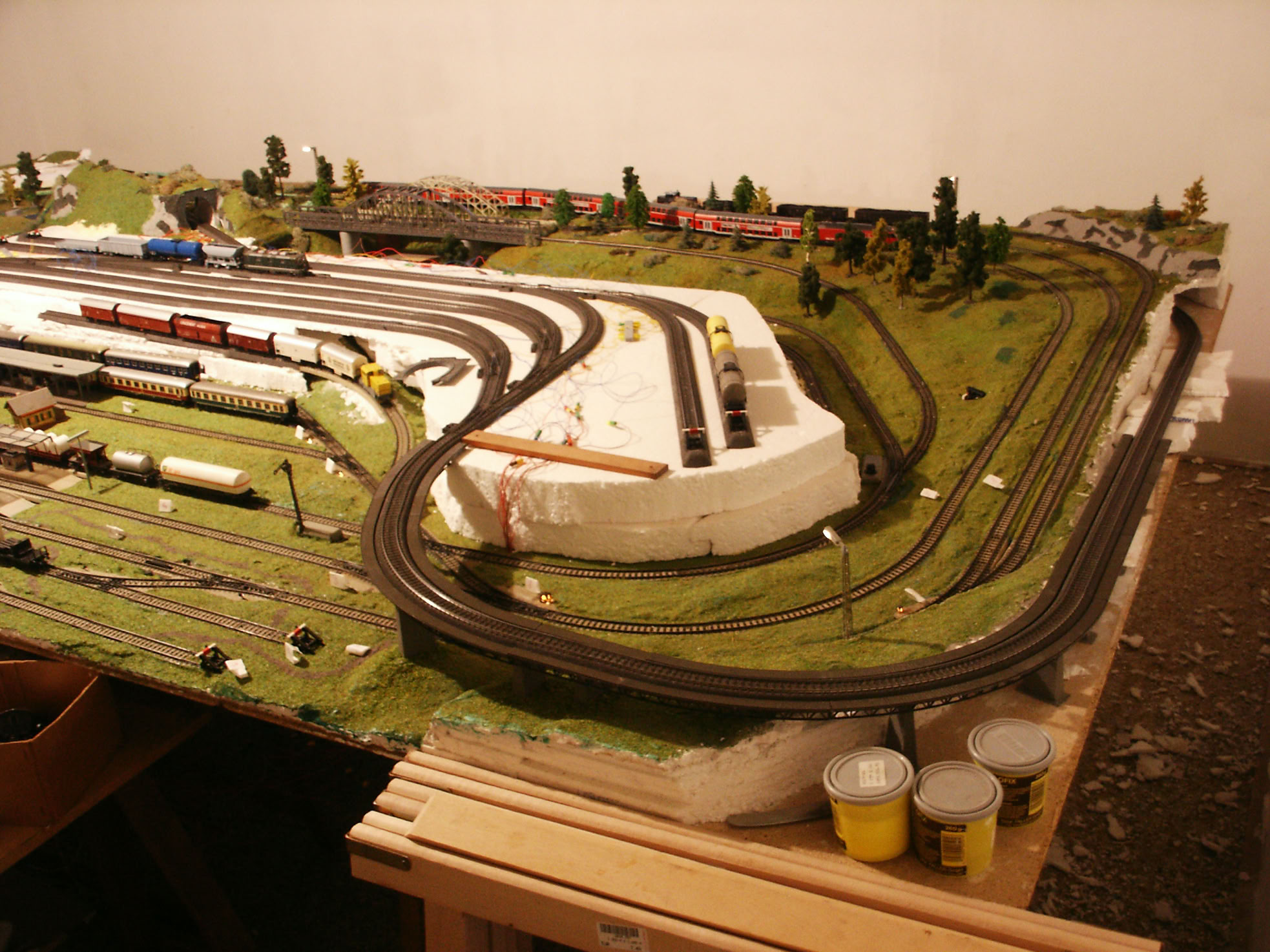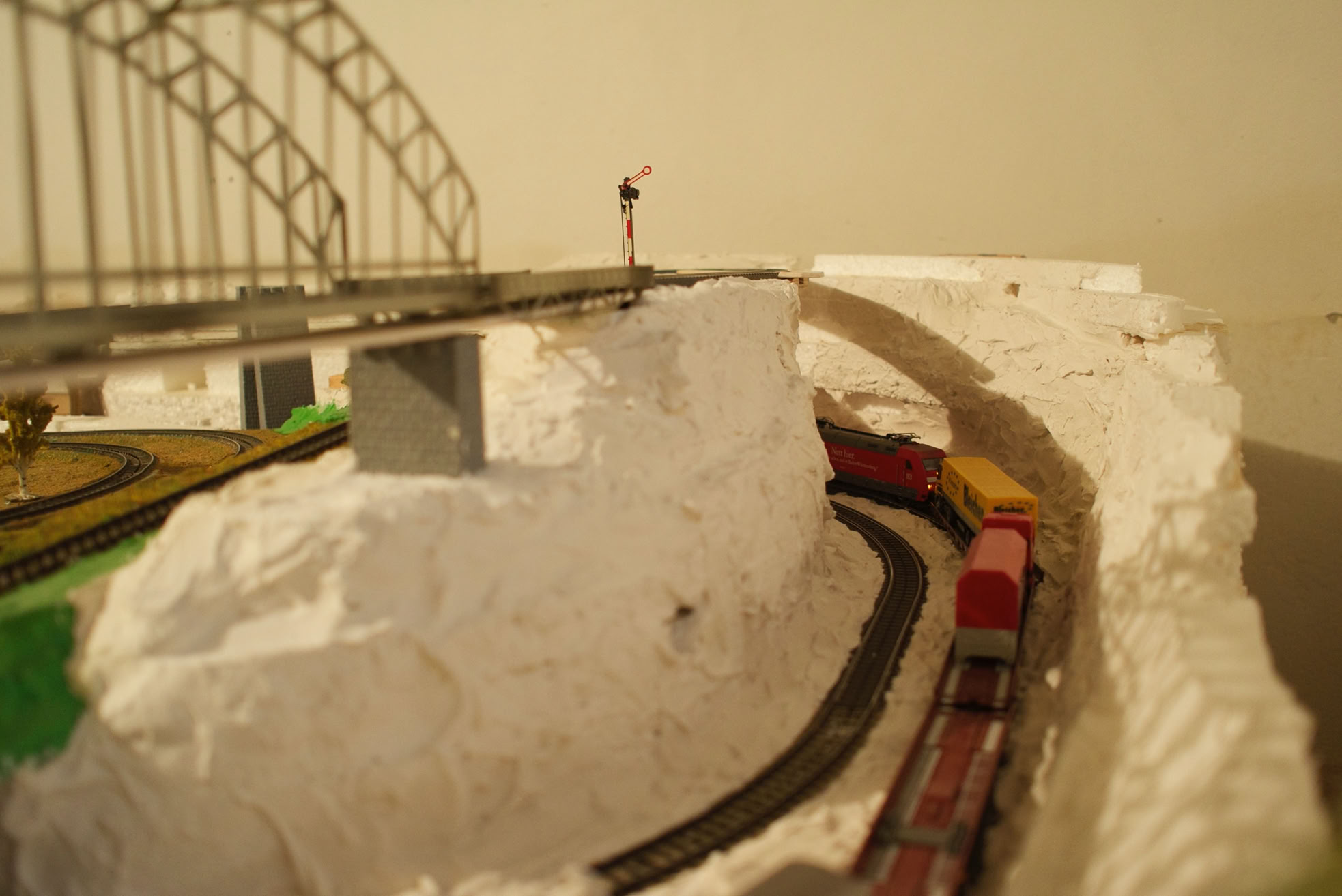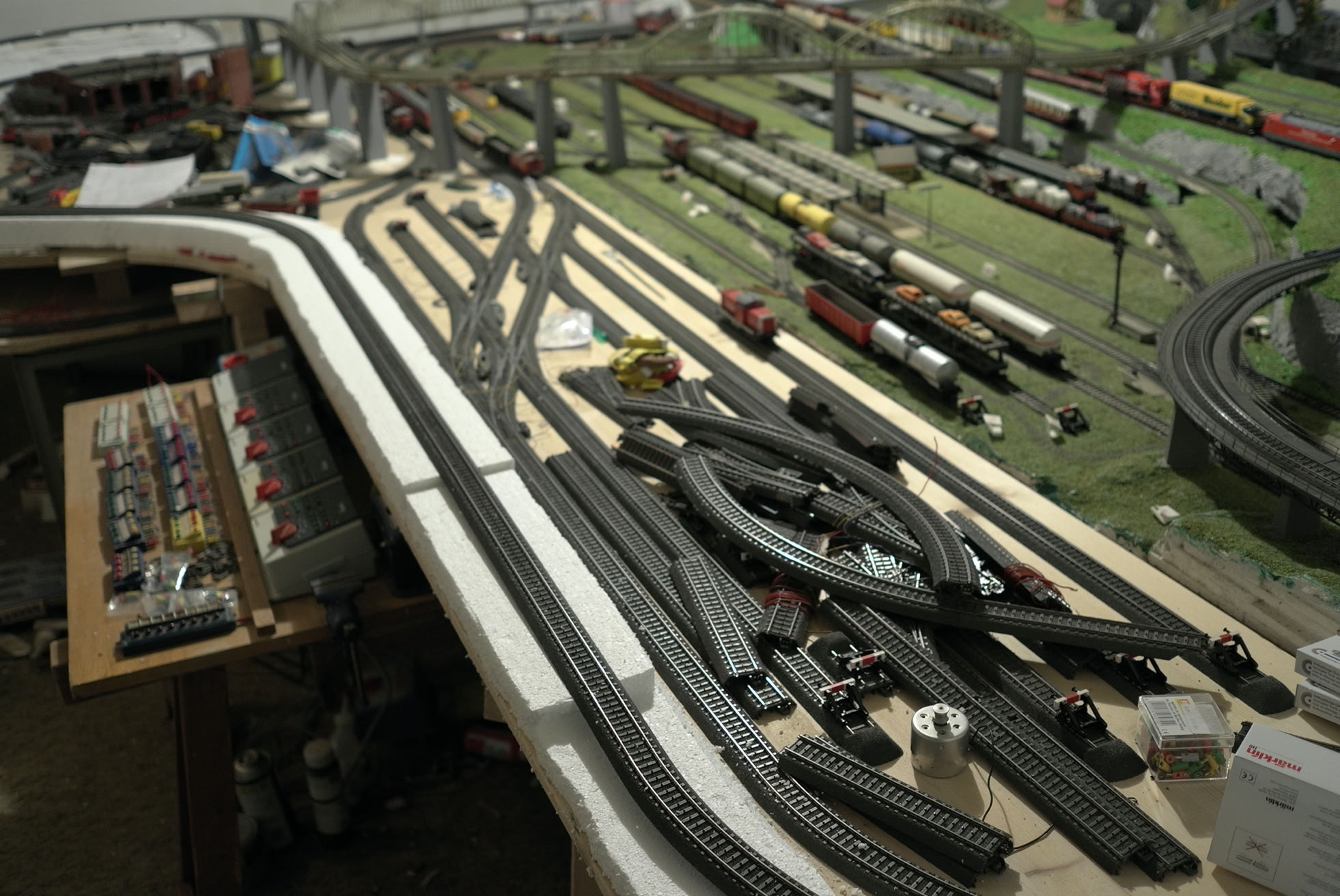 Als letzter großer Bauabschnitt fehlt jetzt für einen optimalen Fahrbetrieb die Fertigstellung der Passage im Untergrund. Erst hierbei wird es möglich, dass Züge vom neuen Güterbahnhof als auch über die große Gitterbrücke her kommend anfahren, ohne Stopp weiterfahren und die komplette Anlage unterfahren können. Damit schließt sich ein großer Kreis für den echten Spielspass. Weitere Details und landschaftliche Ausgestaltungen können dann nachträglich weiter verfeinert werden und die Landschaft weiter detailliert werden.