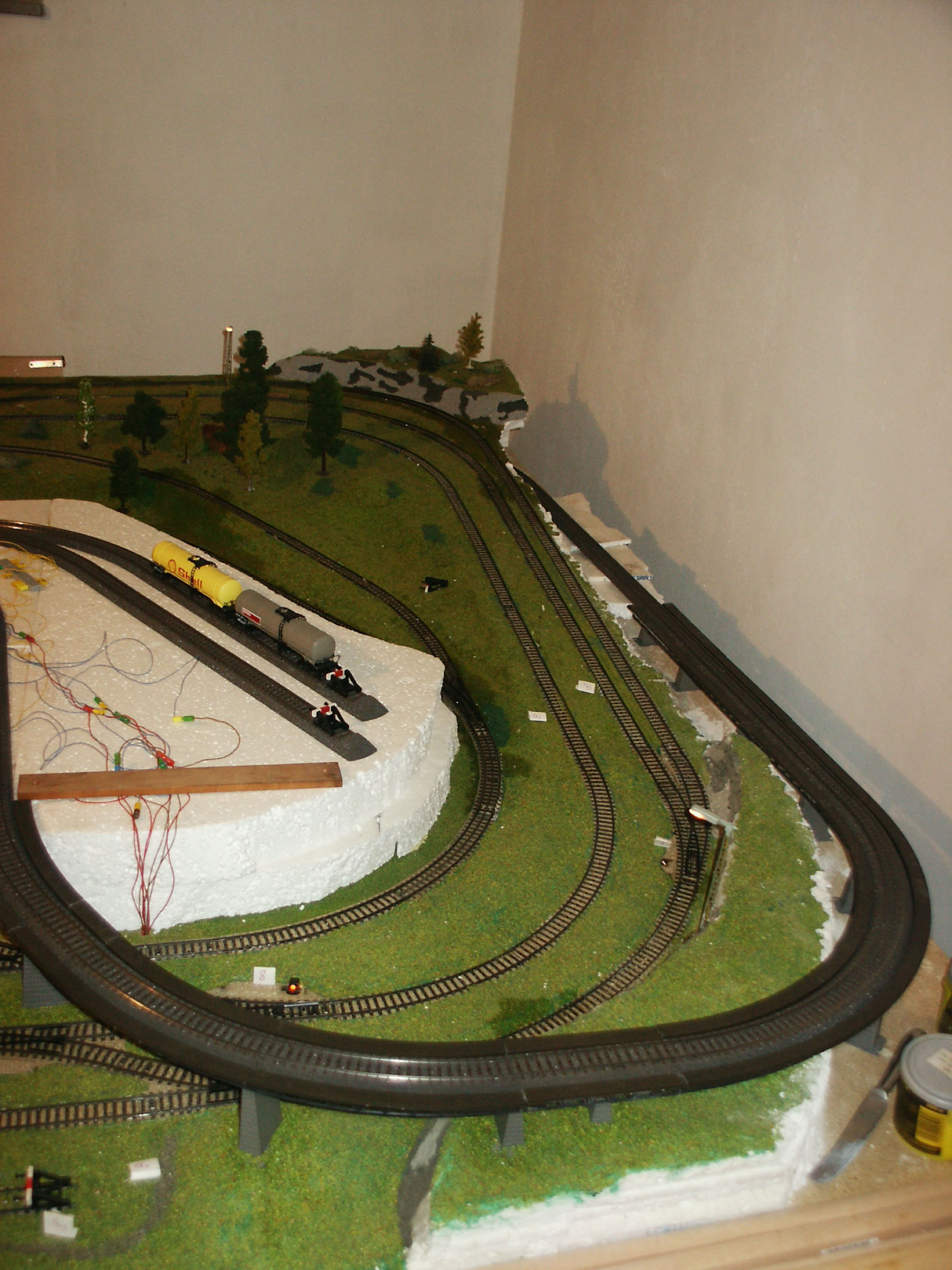 Die Trasse führt an der Außenseite der neuen Anbauplatte entlang. Dahinter wird später noch ein Schattenbahnhof geplant und gebaut, in dem dann ganze Züge abgestellt werden können.