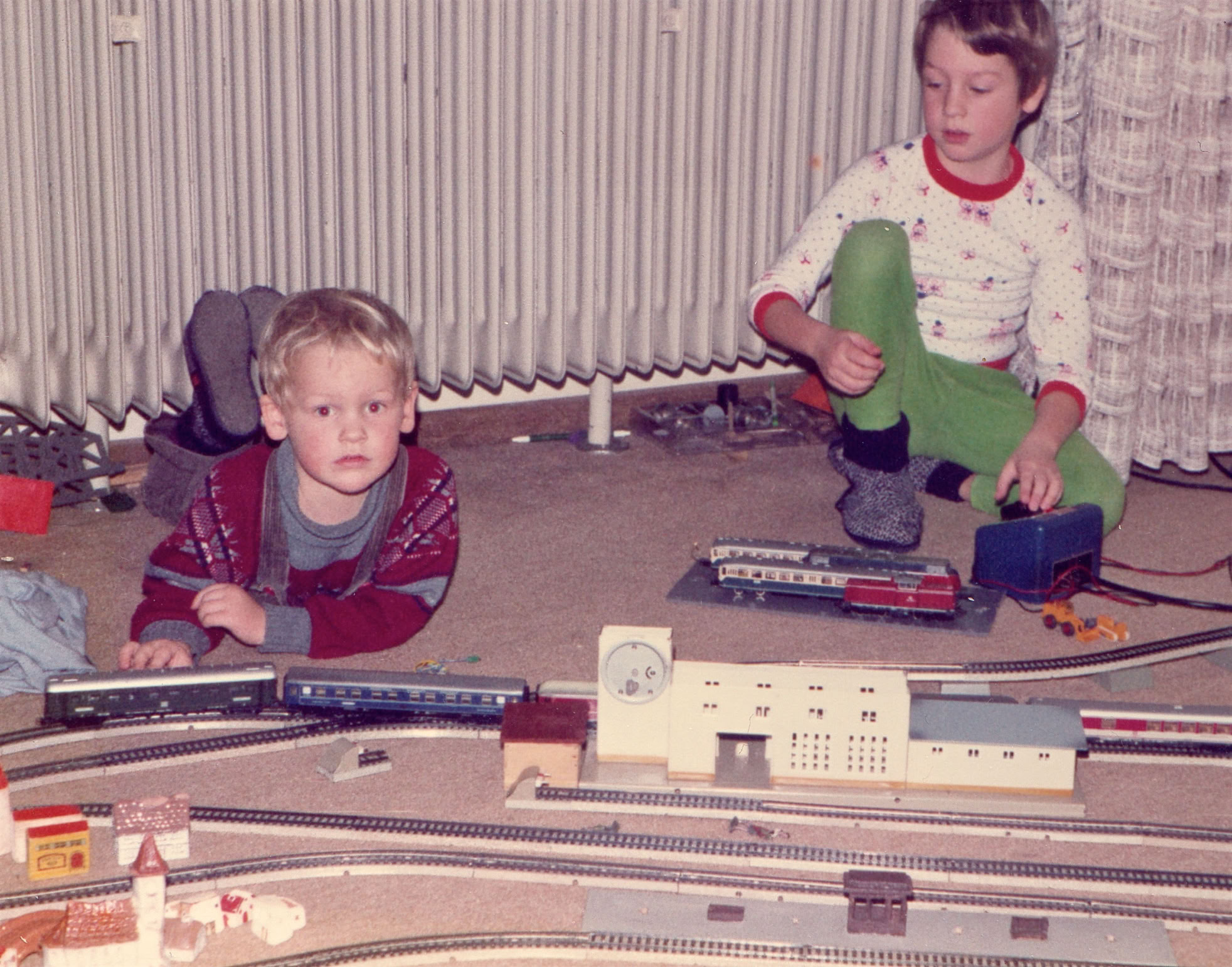 Auch mein Papa hat diese Tradition aufgegriffen und ließ mich und meinen Bruder nur an Weihnachten "die Eisenbahn aufbauen". Die Schienen wurden im Wohnzimmer und quer durch die ganze Wohnung verlegt, die Weichen waren zwar schon seit jeher elektrisch schaltbar, aber die Kabel wurden abgeschnitten und diese von Hand betätigt. Als wir nach Waldenbuch gezogen sind und die Räumlichkeiten eine kreisförmige Verbindung Küche-Gang-Wohnzimmer-Esszimmer-Küche hatten, wurde ein großer Kreis durch das ganze Haus gelegt. Alle spielten mit: meine Mama hat die offenen Güterwägen in der Küche mit selbstgebackenen Gutzle und einige Ripple mit Schokolade beladen, dieser Zug wurde von meinem Papa gesteuert und setzte sich in Richtung Wohnzimmer in Bewegung, wo er dann von mir und meinem Bruder entladen und seiner kostbaren Fracht beraubt wurde :-)