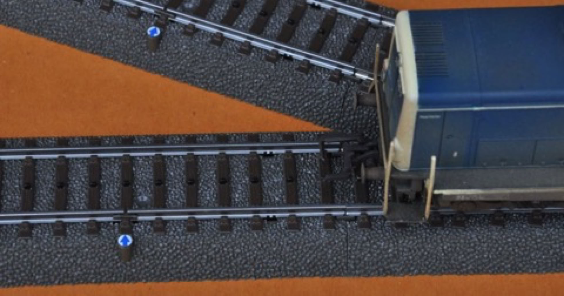 Eine weitere, sehr einfache und kostengünstige möchte ich heute vorstellen. Diese funktioniert aber nur beim C-Gleis (bzw. evtl. auch beim K-Gleis), nicht aber beim M-Gleis. Das funktioniert so: Eine Radachse einer Lok oder eines Wagens ist bei Märklin immer aus Metall, also elektrisch leitend. Da bei Märklin beide Schienen auf Masse liegen sowie die Spannungsversorgung über den Mittelleiter funktioniert, ist das Märklinsystem sehr robust bezüglich des elektrischen Kontakts. Ein Rad könnte auch abheben oder in einer Weiche auf eine Kunststoff-Weichenzunge fahren, das andere Rad liegt dabei immer noch auf der metallenen Schiene an und die Lok fährt unterbrechungsfrei. Gleichstromsysteme haben hier deutlich größere Probleme.